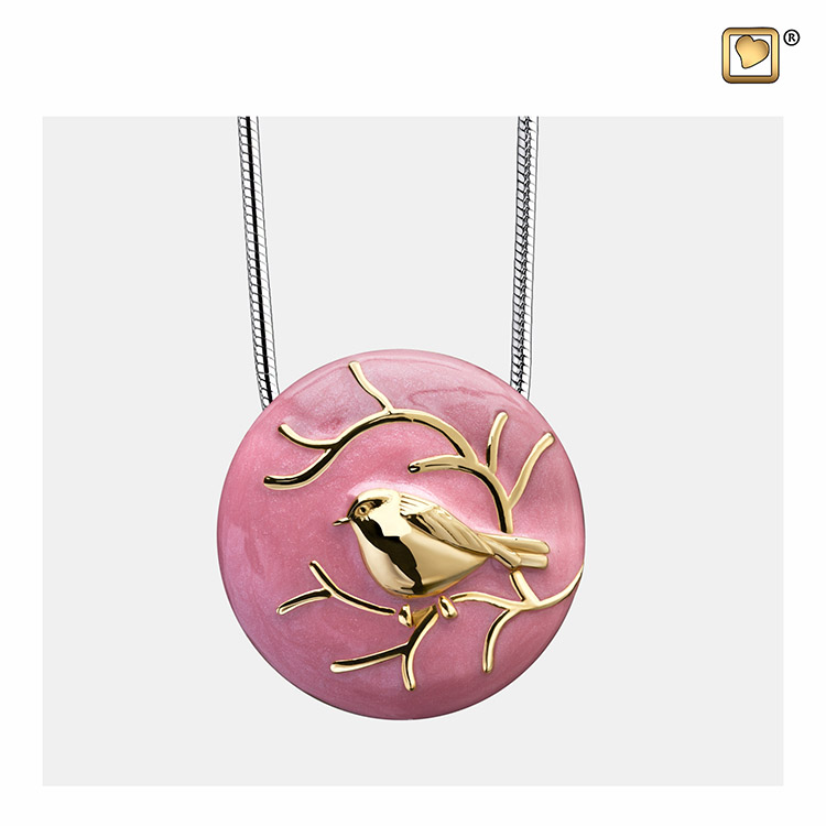 Ascheanhänger Vergoldetes Silber Spatz Rosa, inklusive Design Schlangecolliere