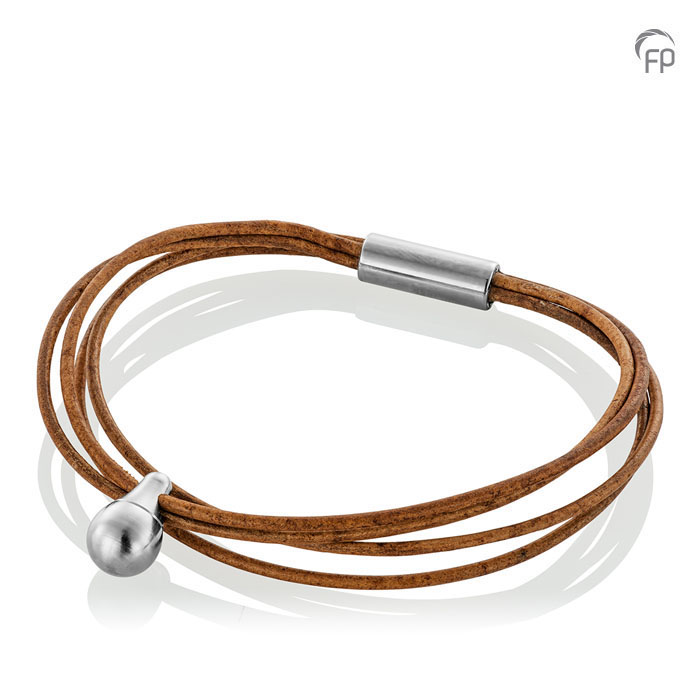 Braune Lederschnur Spang Armband, RVS Aschenraum