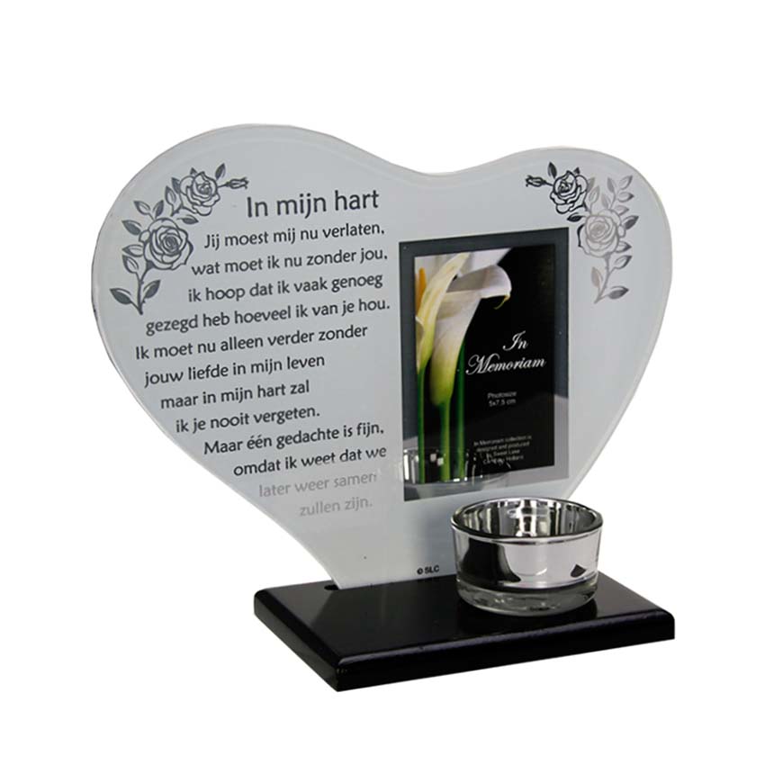 Gedenkherz ´Verlassen´, mit Fotorahmen und Teelichthalter
