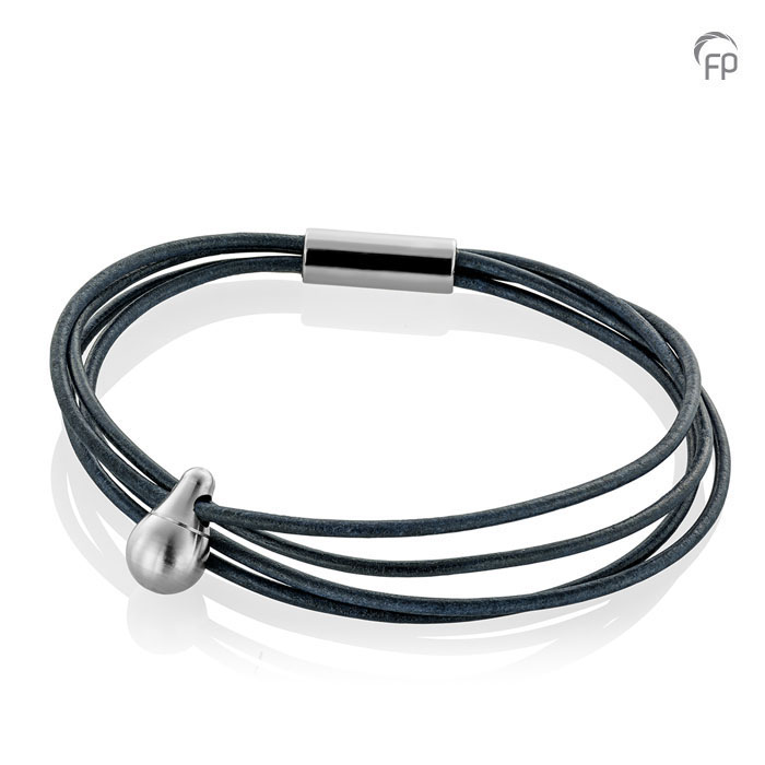 Graue Lederschnur Spang Armband, RVS Aschenraum