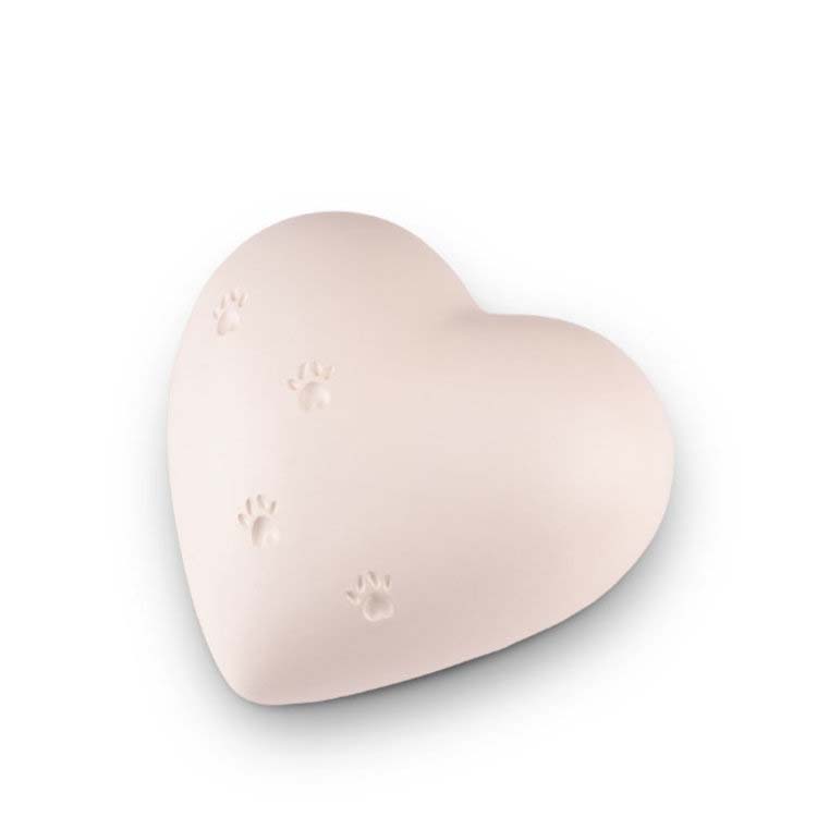 Große Keramische Herz Tierurne Pfotenabdrücke Mattweiße (1,4 Liter)