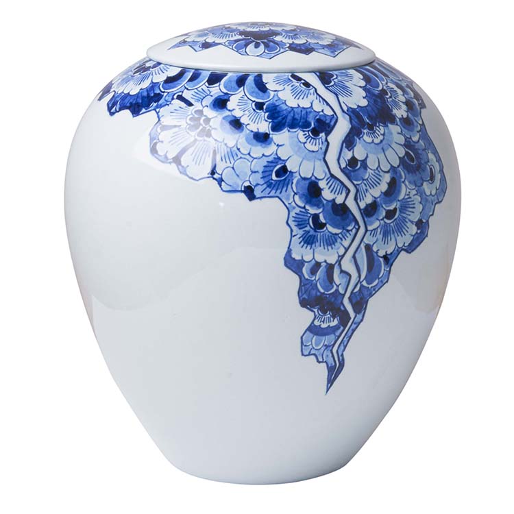 Große Weiße Bolle Vase Urne Delfter Blaumotiv (3,0 Liter)