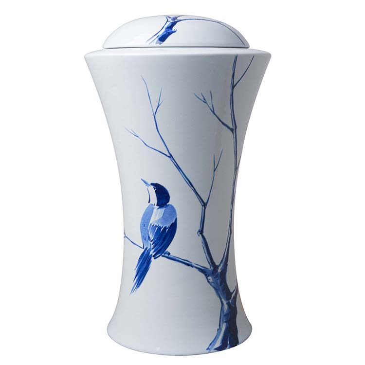 Große Weiße Vase Urne Schlanke Taille Delfter Blauvogel motiv (4,5 Liter)