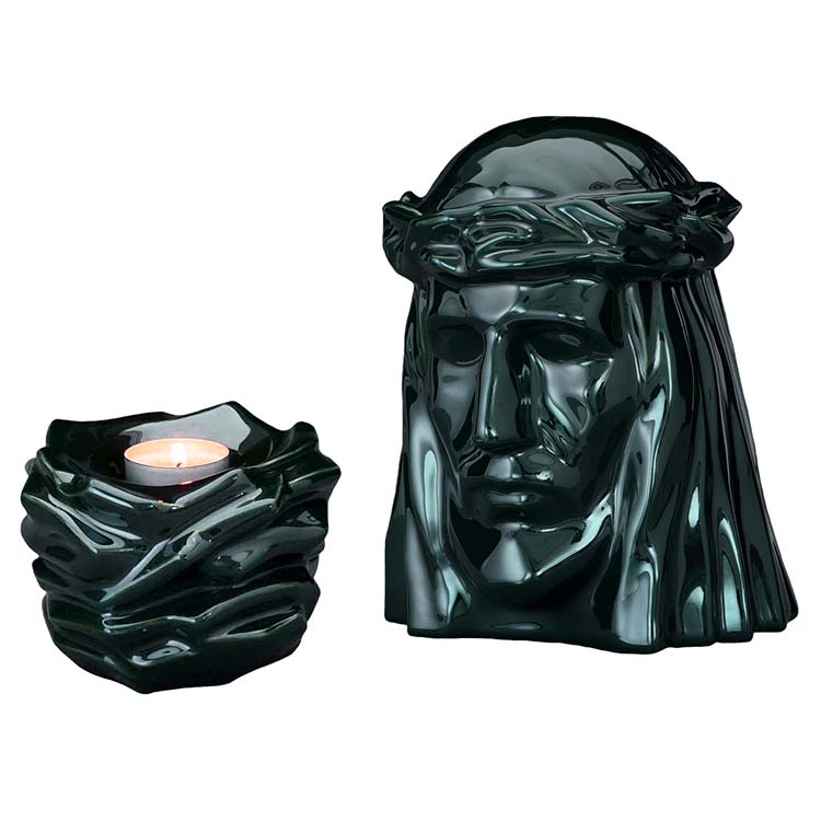 Keramische Verbrennunge Art Urne ´Christus´ Oxidgrün Vorteilset (5,1 und 0,4 Liter)