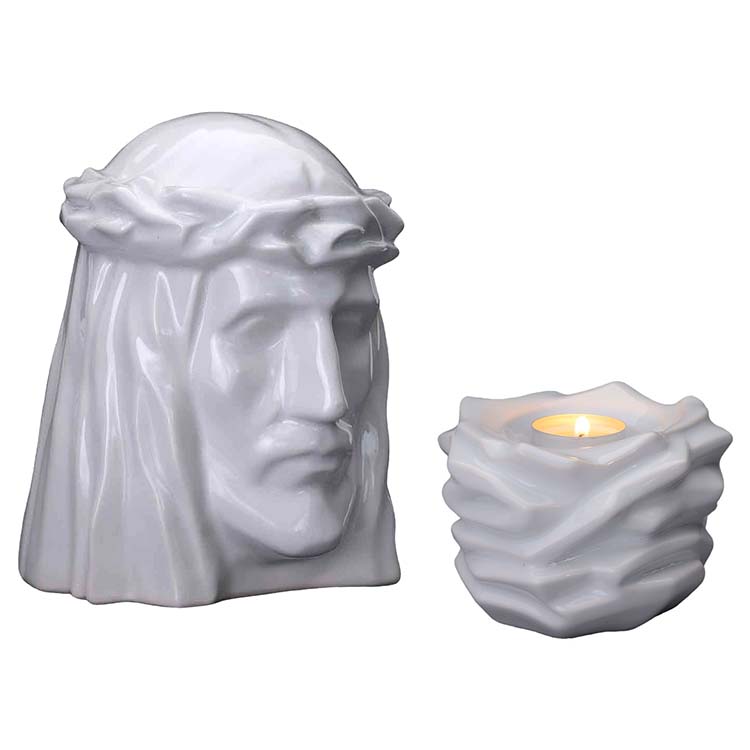 Keramische Verbrennunge Art Urne ´Christus´ Weiß Vorteilset (5,1 und 0,4 Liter)