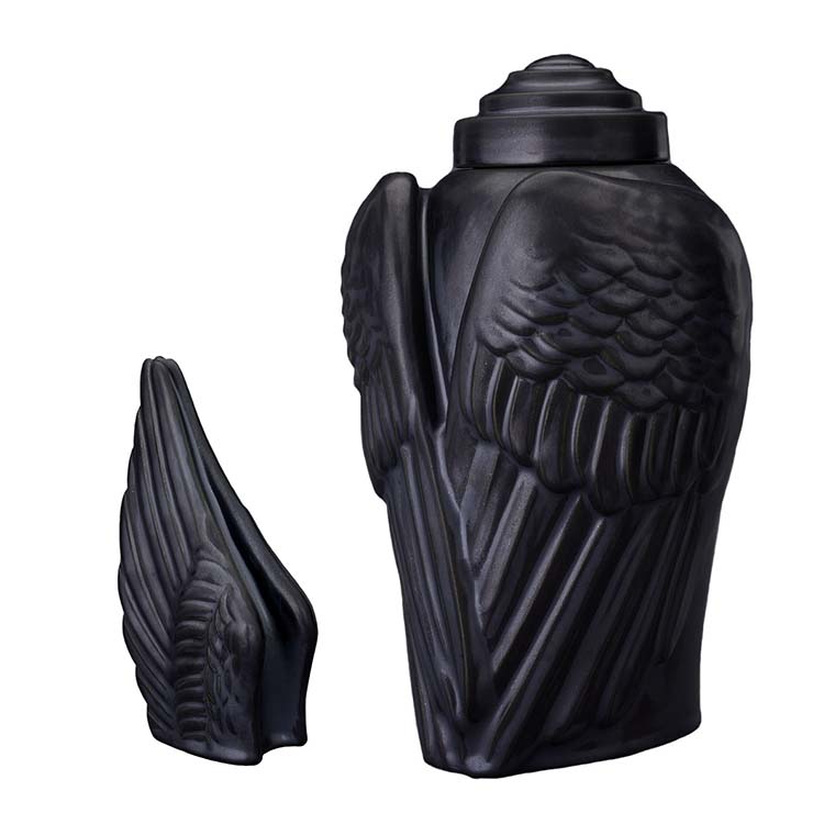Keramische Verbrennunge Art Urne Flügel Mattschwarz Vorteilset (3,1 und 0,22 Liter)