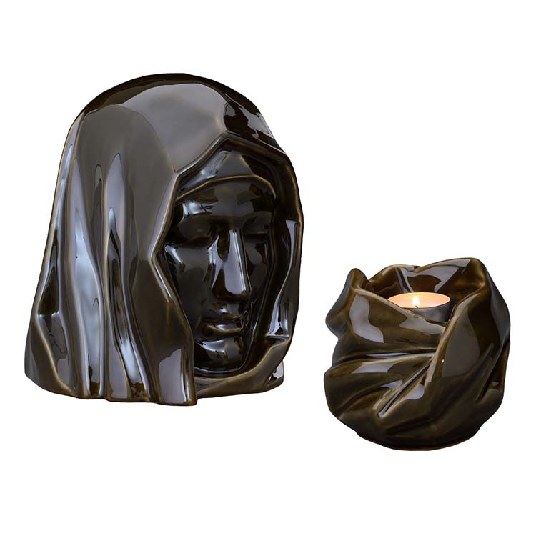 Keramische Verbrennunge Art Urne ´Holy Mother´ Grün Geölt Vorteilset (5,1 und 0,48 Liter)