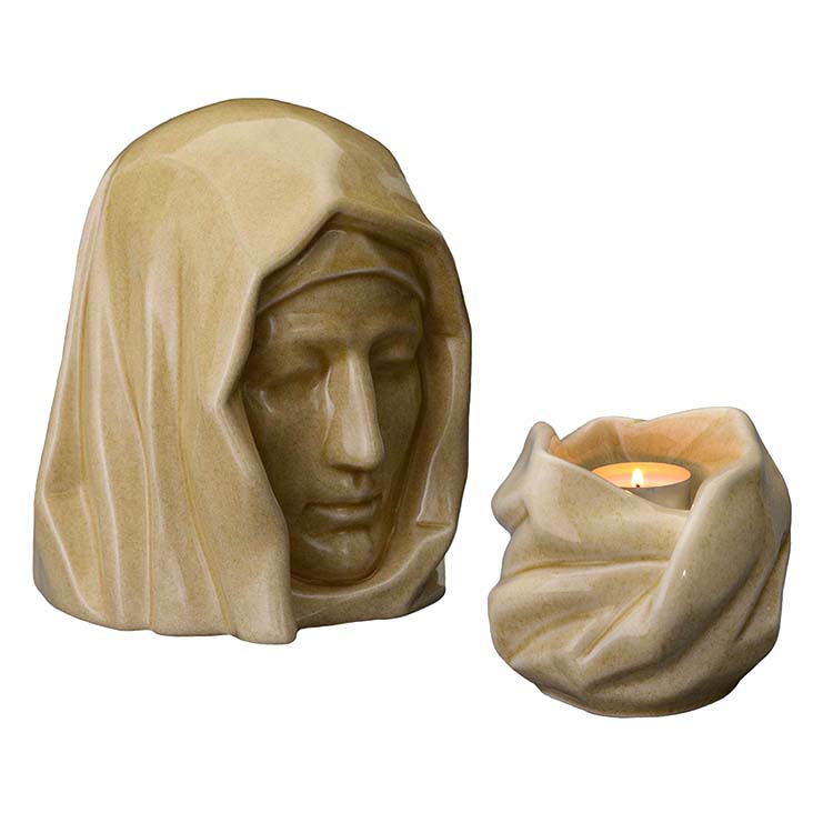 Keramische Verbrennunge Art Urne ´Holy Mother´ Sandfarben Vorteilset (5,1 und 0,48 Liter)