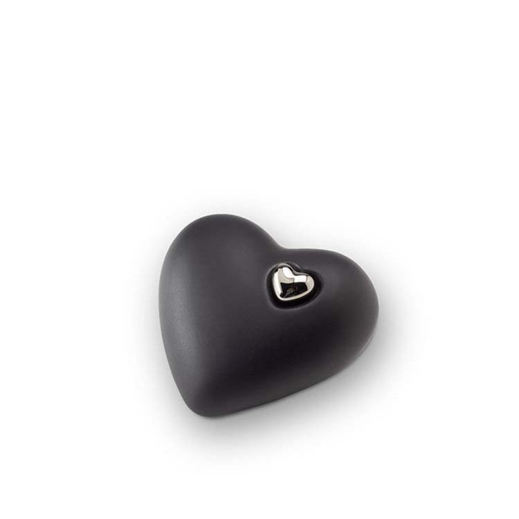 Kleine Keramische Herz Tierurne Mattschwarz (0,7 Liter)