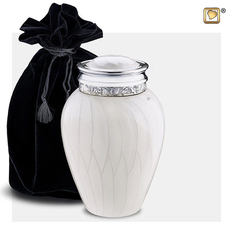 Kleine Segen Tierurne Weißer Marmor, Silberne Zierleisten (0,8 Liter)
