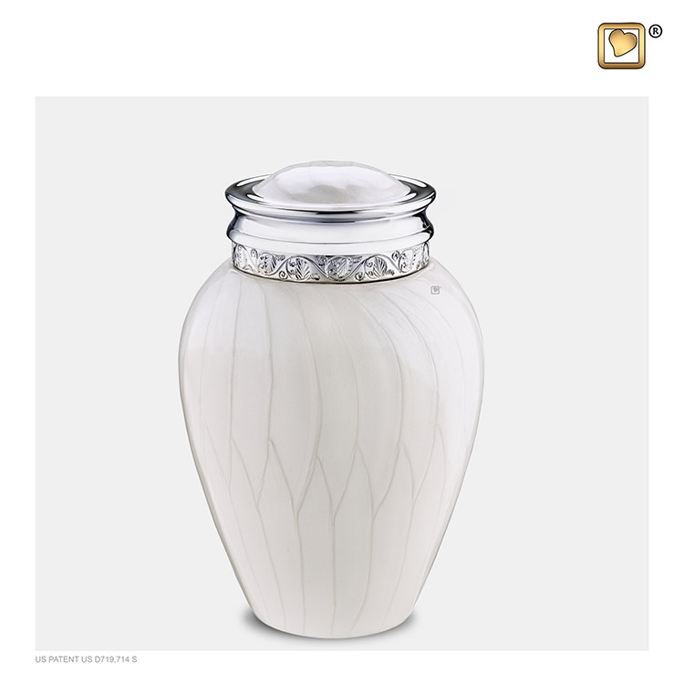 Kleine Segen Urne Weißer Marmor, Silberne Zierleisten (0,8 Liter)