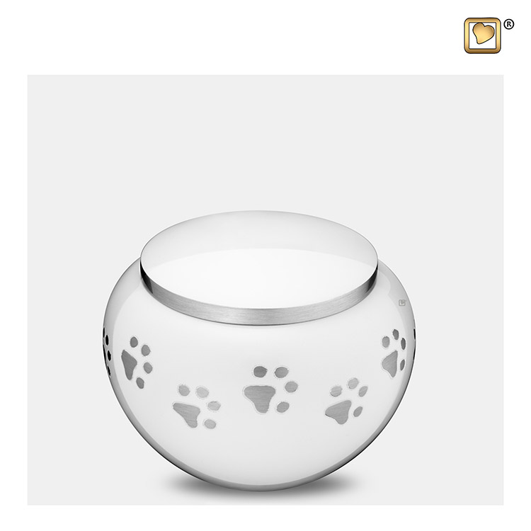 Kleine Tierurne Silberne Pfotenabdrücke Weiß (0,45 Liter)