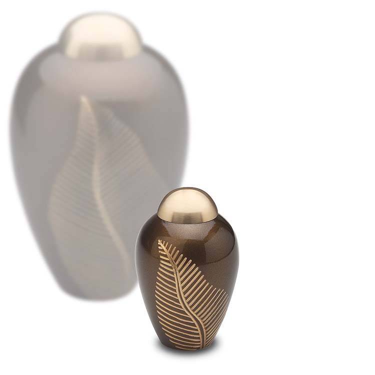 Messing Mini Urne GoldBraune Feder (0,05 Liter)