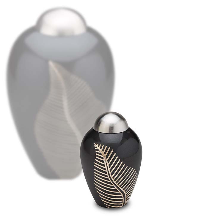 Messing Mini Urne Mittelnachtschwarze Feder (0,05 Liter)