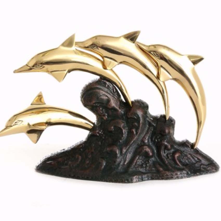 Mini Bronze Aschestatue Delfine Spielen (0,3 Liter)