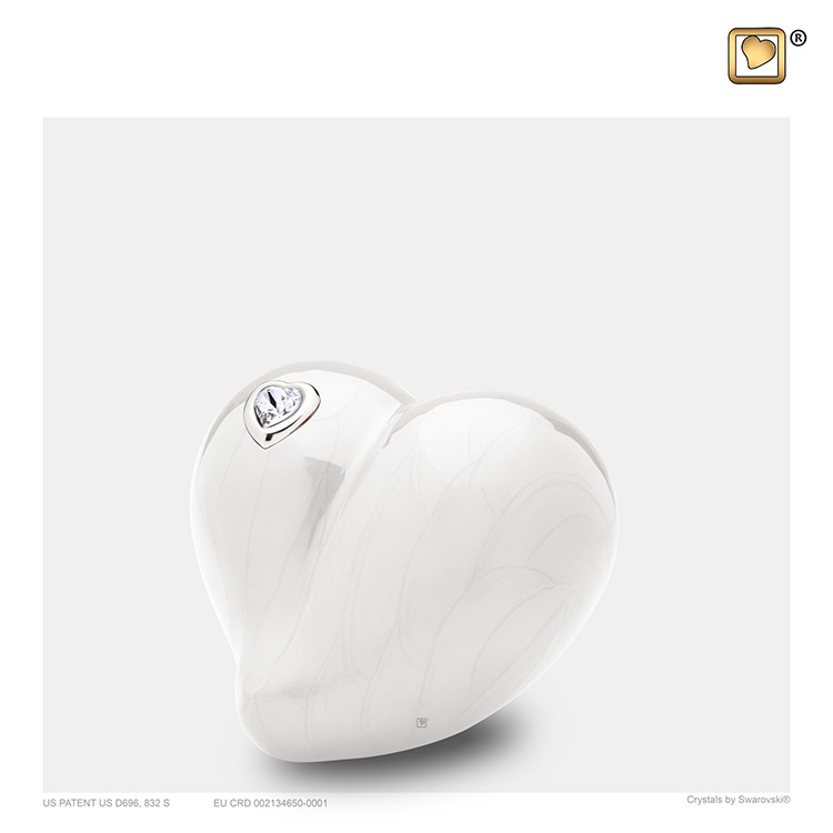 Mini LoveHeart Tierurne Weiß Marmoriert mit Swarovski (0,1 Liter)