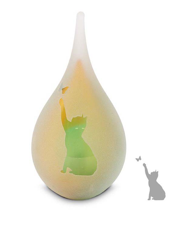 Mini Träne Tierurne Katze mit Schmetterling – Mattgelbgrün Gefrostet (0,05 Liter)