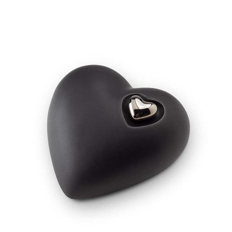Mittelgroße Keramische Herz Tierurne Mattschwarz (1,4 Liter)
